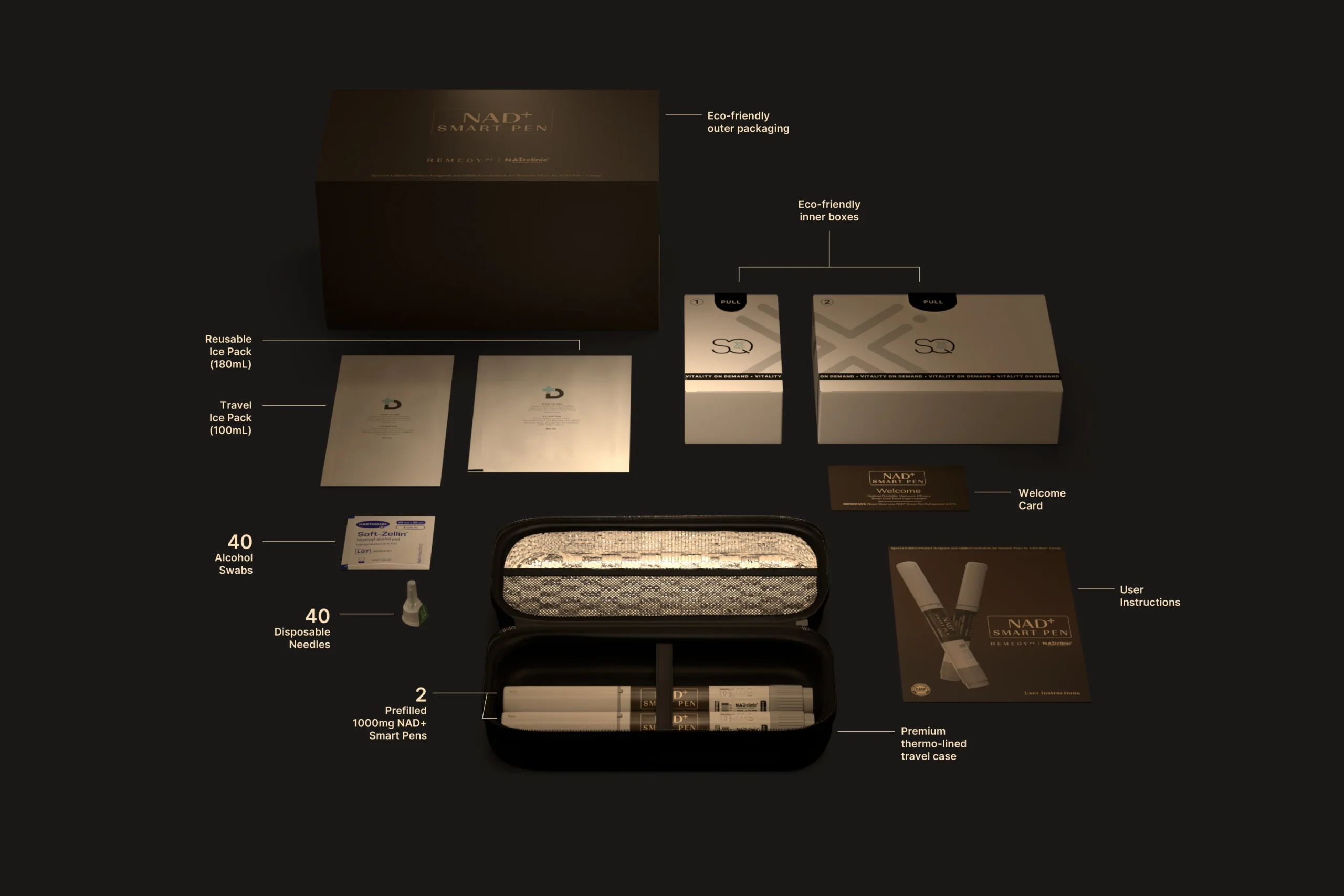 Commit to your new routine and save. Make NAD+ a part of your daily at-home wellness routine to maximize results. Each pen contains 1000 mg of NAD+ within a 3 mL cartridge, delivered through an adjustable smart dosing mechanism.